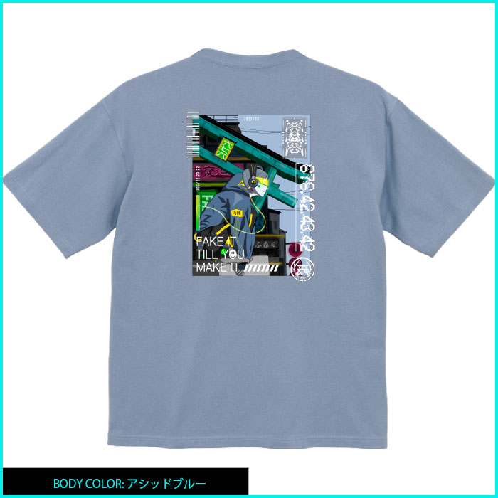 ヘビィウェイトのボディを使った丈夫で質の高いビッグシルエットT-shirt cyberpunk × 和 × 陸漆陸をテーマにデザインをさせていただきました。健康優良不良少年。