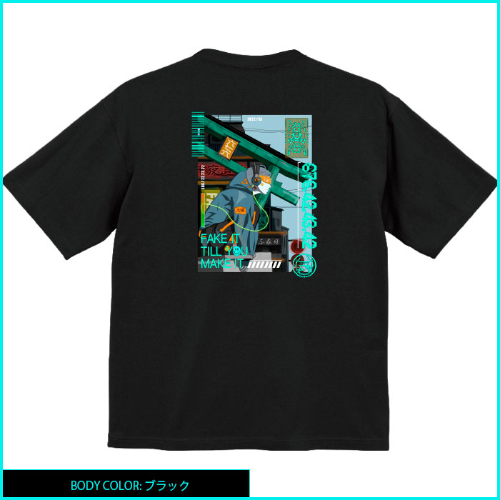 ヘビィウェイトのボディを使った丈夫で質の高いビッグシルエットT-shirt cyberpunk × 和 × 陸漆陸をテーマにデザインをさせていただきました。健康優良不良少年。