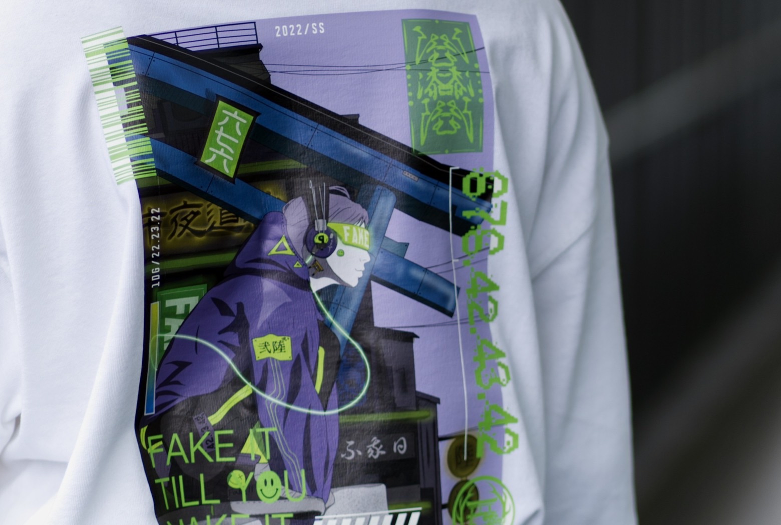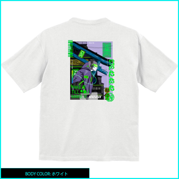 ヘビィウェイトのボディを使った丈夫で質の高いビッグシルエットT-shirt cyberpunk × 和 × 陸漆陸をテーマにデザインをさせていただきました。健康優良不良少年。