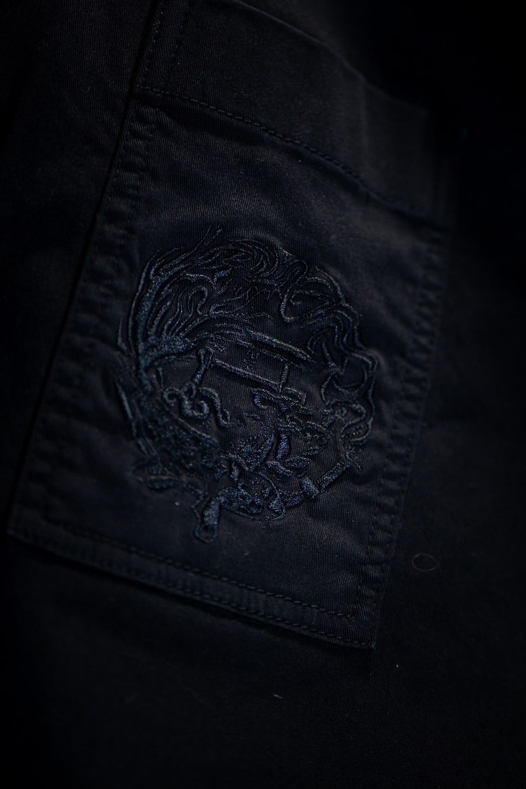 携帯が入れやすいポジションに専用ポケットがあり陸漆陸-弐式-のロゴが刺繍で入ってます。